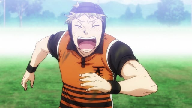 “Renpei, you’re the height of lame right now.” With those words, the Tenjiku team’s stagnant atmosphere begins to change. They begin closing the point gap between themselves and Jinko. In order to change the flow of the game, Jinko sends Oharano onto the field. Making ingenious use of Ebumi and Gion, Jinko regains their pace. When Gion scores his first try at the end of the battle, in his eyes are the hint of…