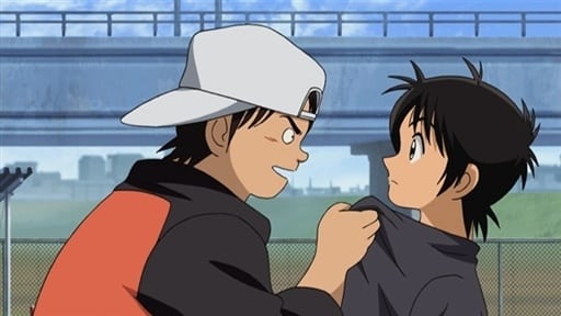 Ko and Nakanishi organize a sandlot game with some old friends from elementary school. Ko stands on the pitcher’s mound with Nakanishi as catcher. But after Ko throws a few practice pitches…