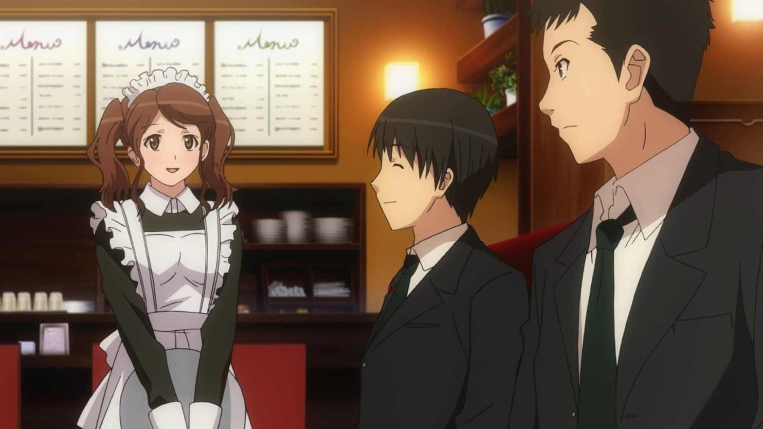 Amagami SS Season 1 Episode 10 Nakata Sae Arc, Chapter 2: Training Sae’s training to become a waitress continues with the help of Junichi and Miya, by practicing her speech skills and practicing how to change uniforms in three minutes–where Miya catches her, in a swimsuit, and Junichi in a compromising position when Sae tripped.Continue reading “Amagami SS Season 1 Episode 10”