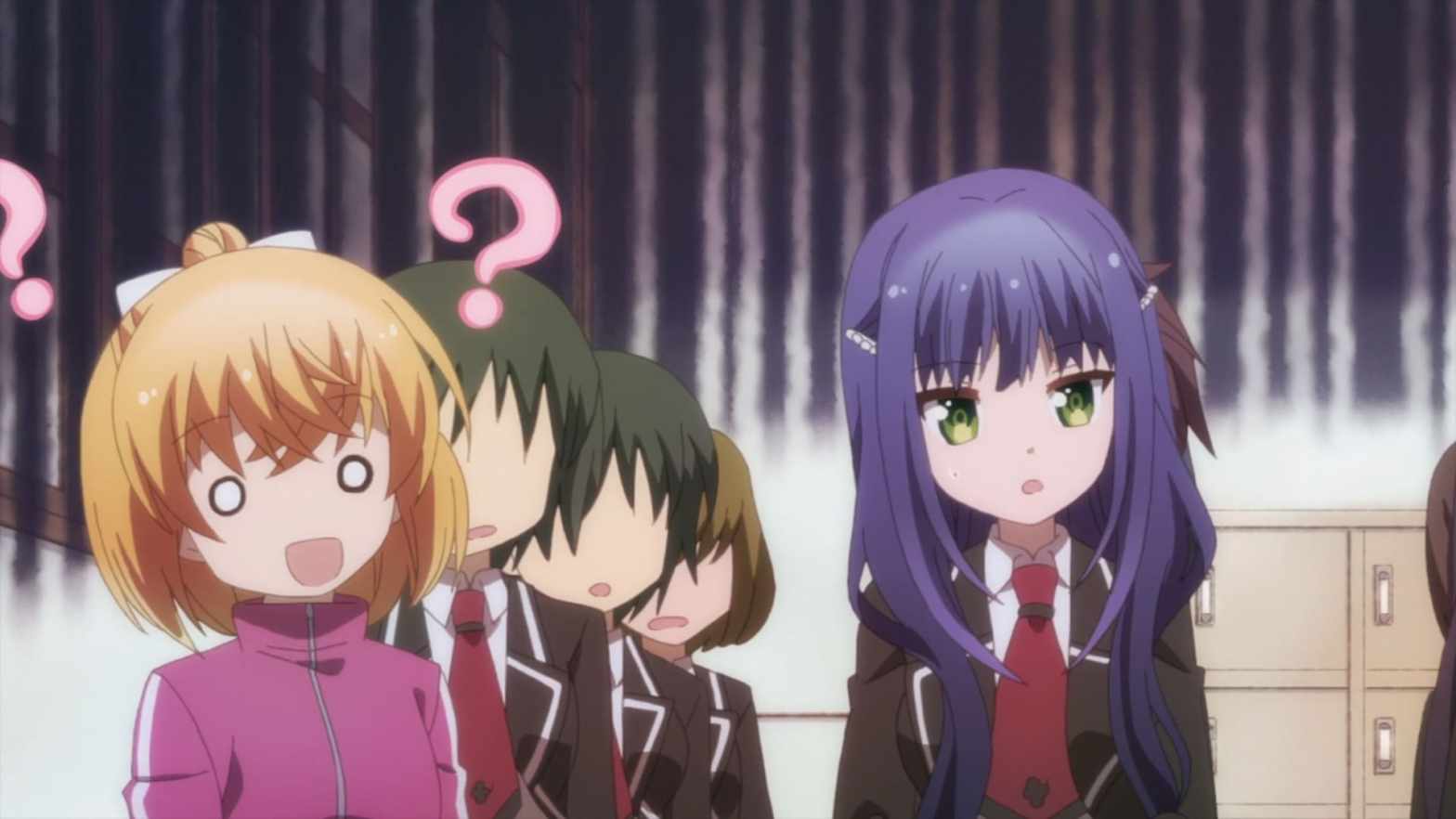 Unhappy Go Lucky! Season 1 Episode 3 April 28: My First Happiness Training Class 7 end up having to take part in an overly elaborate life-sized board game. There, the girls compete with Hibiki Hagyū, who gets lost easily, and her childhood friend Ren Ekoda, who she has a crush on. unhappy-go-lucky-ep-3