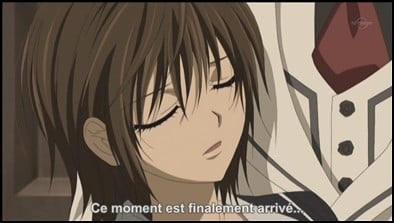Vampire Knight Season 2 Episode 7 The Thorny Kiss Kaname finally turns Yuki into a vampire and awakens her memories. However, Zero comes just in time to see Yuki drink Kaname’s blood, where she claims that Kaname is her ‘onii-sama’ (brother) before she faints. vampire-knight-ep-7