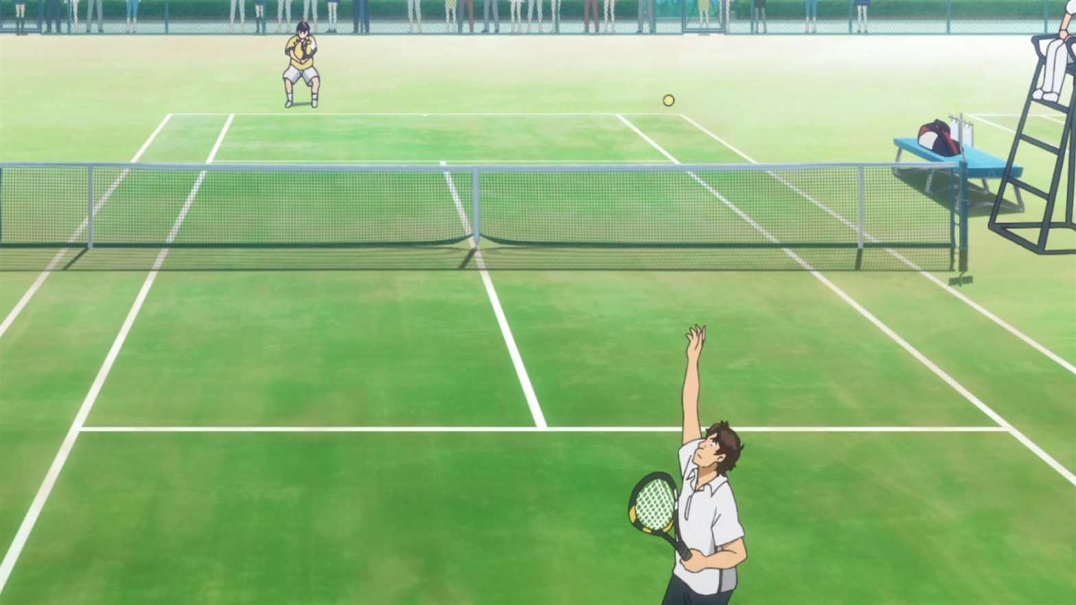 Baby Steps Season 2 Episode 6 First Encounter by Scouting Coach Aoi explains to Eiichir? that he stopped the match against Takuma because his body wasn’t developed to serve like Takuma yet. If he had continued to serve that way, he would have injured himself and forced himself to give up his tennis career. baby-steps-ep-6