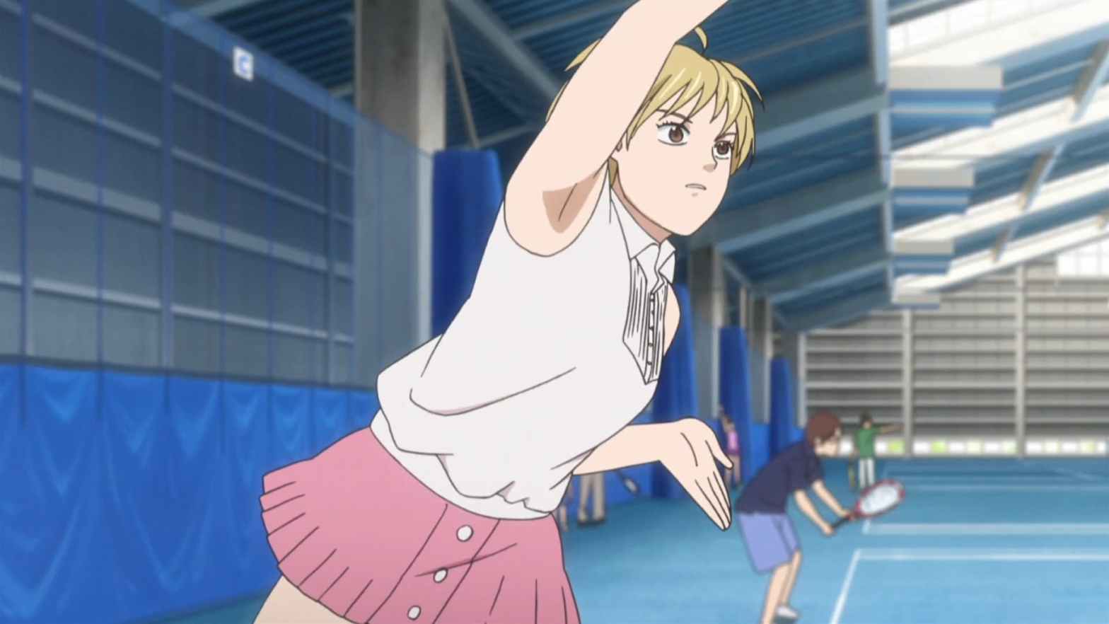 Baby Steps Season 1 Episode 13 Art and Technique The match between Hiromi and Eiichir? begins. Everytime Eiichir? tries to go on the attack, Hiromi hits a shot Eiichir? can’t reach. baby-steps-ep-13