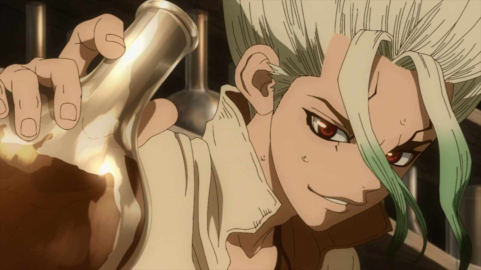 Dr. Stone Season 1 Episode 15 The Culmination of Two Million Years After Senku’s unlikely victory, quick marriage, and even hastier divorce, the kingdom of science is back to work to finally finish Ruri’s medicine! dr-stone-ep-15