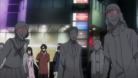 Durarara!! Season 2 Episode 32 A Great Man Will Be Remembered For His Achievements Izaya and Shizuo prepare to face off as the city fills with a mob possessed by Saika. durarara-ep-32