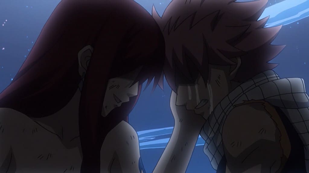 Fairy Tail Season 1 Episode 40 Titania Falls Natsu works on wrecking the tower, much to the possessed wizards aggravationwho gets a taste of the Dragon Slayers true power. As the aftershock of the Etherion blast threatens to take everyone out, Erza decides to take one for the team. fairy-tail-ep-40
