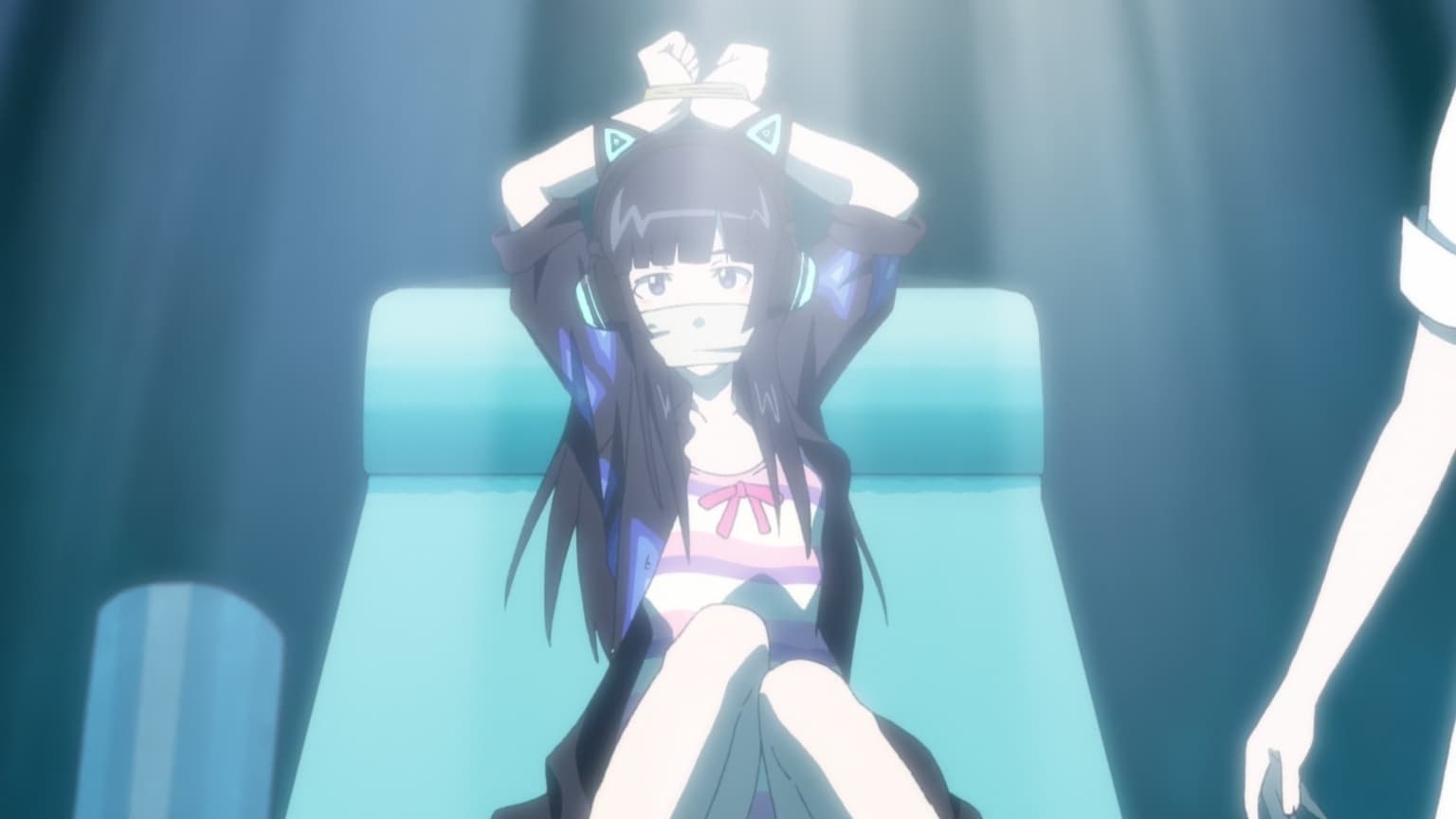 FLCL Season 2 Episode 3 Stone Skipping Crazy things happen during Hidomi’s NO activation, and she is now left with a cheerful and happy personality, which is the total opposite of her real self. The only way to bring her back to normal is to destroy the cables of the giant iron. flcl-ep-3