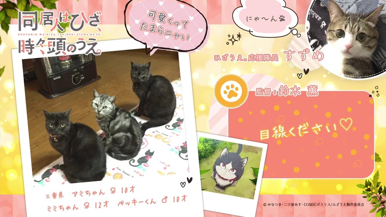 My Roommate is a Cat Season 1 Episode 3 I Touch You Subaru and his editor, Kawase, plan to have their next meeting at Subaru’s house. When the cat-loving Kawase sees Haru for the first time, he can’t restrain his excitement as he chases her around to play with her. Meanwhile, Haru has been behavingContinue reading “My Roommate is a Cat Season 1 Episode 3”