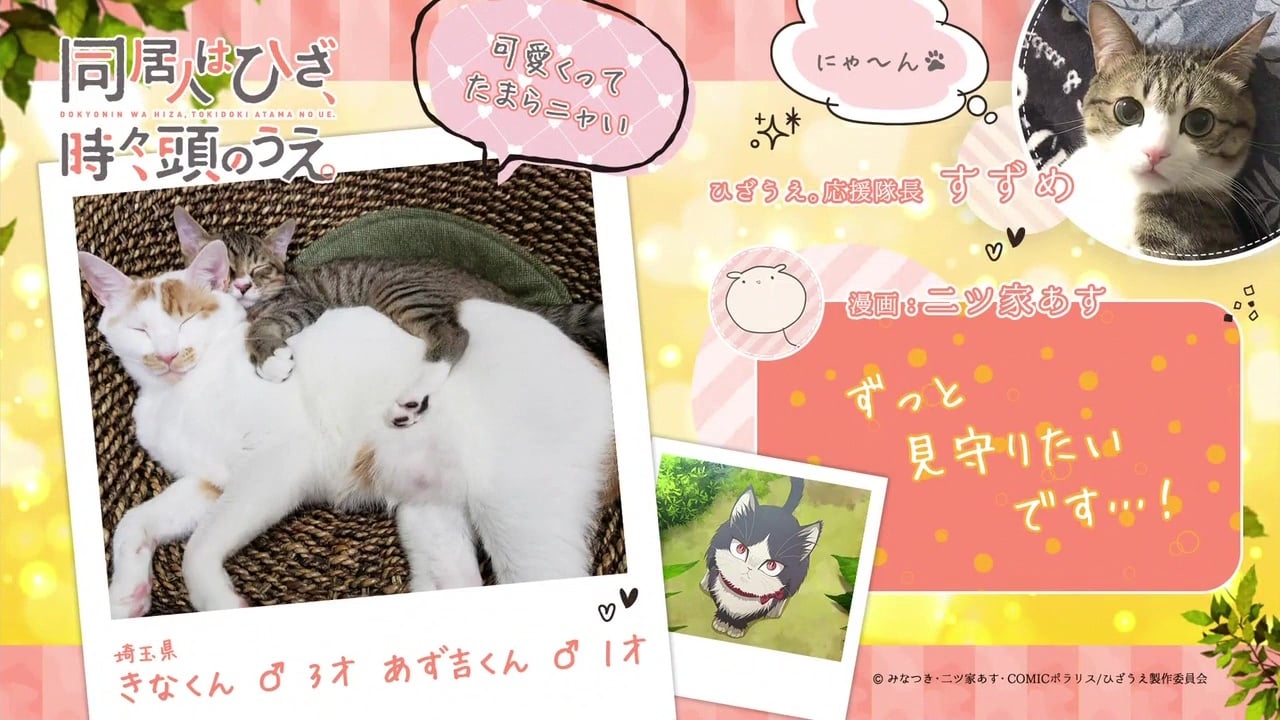 My Roommate is a Cat Season 1 Episode 5 What I Want to Tell You The distance between Subaru and Haru is slowly shrinking. Since the vet said Haru was slightly overweight, Nana visits Subaru’s home to share her advice on cat diets. Subaru enthusiastically listens to all kinds of tips he’d never heard beforeContinue reading “My Roommate is a Cat Season 1 Episode 5”