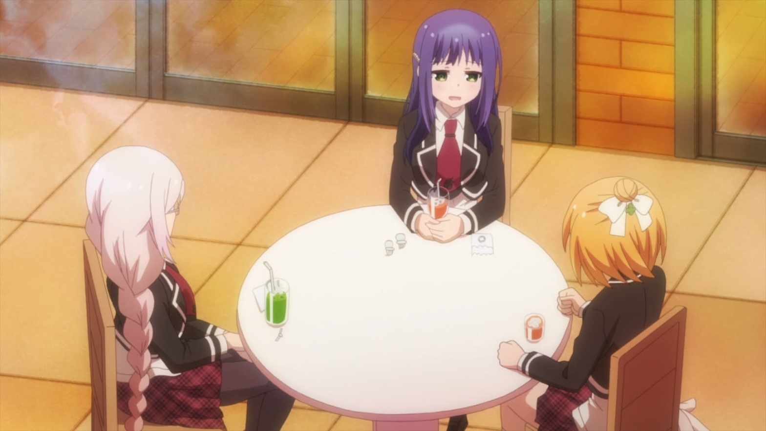 Unhappy Go Lucky! Season 1 Episode 3 April 28: My First Happiness Training Class 7 end up having to take part in an overly elaborate life-sized board game. There, the girls compete with Hibiki Hagyū, who gets lost easily, and her childhood friend Ren Ekoda, who she has a crush on. unhappy-go-lucky-ep-3